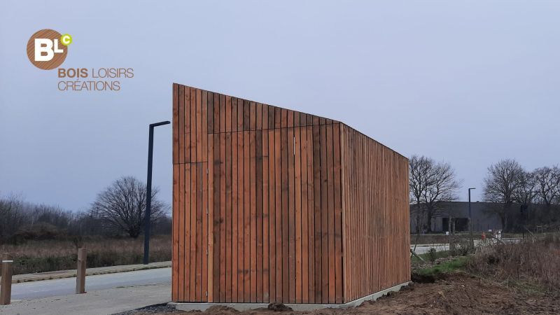 D’apparence simple, ces habillages sont plus complexes qu’il n’y parait car il faut respecter les différentes contraintes d’accès, de maintenance, de démontage, les distances par rapport aux éléments électriques, la tenue aux conditions climatiques : vent notamment. Ils comportent une structure en acier galvanisé sur laquelle est posée un bardage en cœur de douglas.