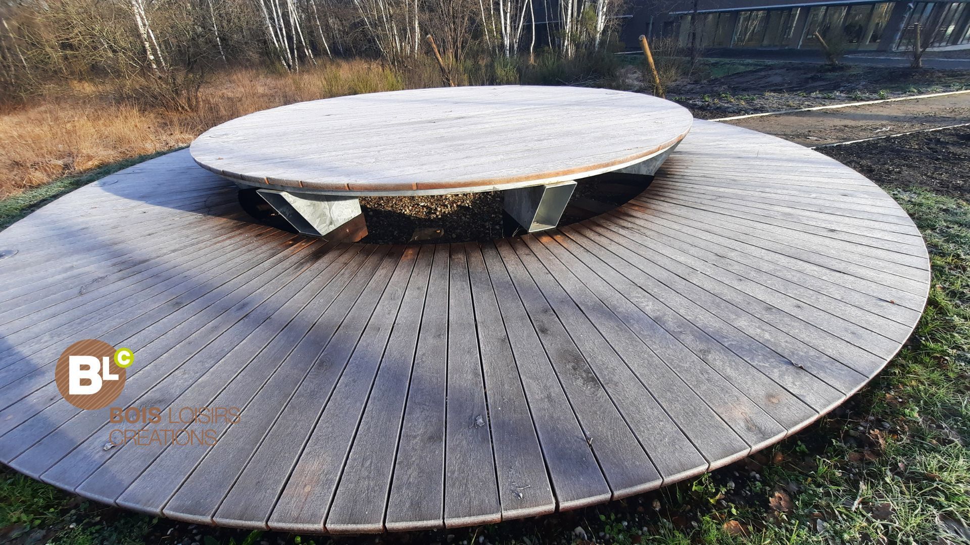A Mérignac, dans le cadre de l'aménagement du programme Coeur Aéroparc, les équipes de BOIS LOISIRS CRÉATIONS ont réalisé la pose de différents mobiliers : des bancs en chêne sur une toiture terrasse, un observatoire de forme ronde en robinier et un grand anneau en robinier. Des éléments de biodiversité agrémentent l'espace.