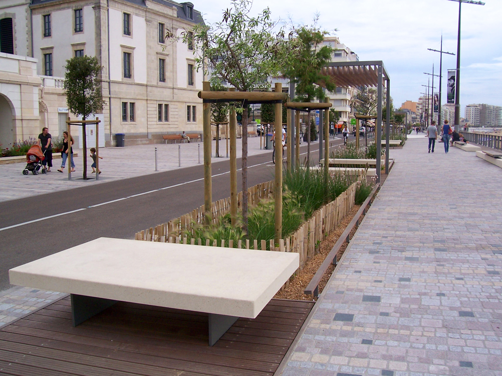 MOBILIER URBAIN BOIS METAL Aménagement du Front de Mer - LES SABLES D'OLONNE - 85 La Société BOIS LOISIRS CREATIONS a réalisé du mobilier urbain métal/bois ipé/ pierre reconstituée (corbeilles, poubelles, bancs, bornes, barrières, pergolas). Précédent Suivant